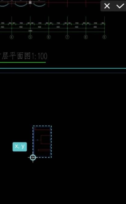 5. 在图纸上寻得合适位置,可通过拖动点标记对粘贴位置进行调整,之后点击右上角的“?”按钮,完成粘贴操作。