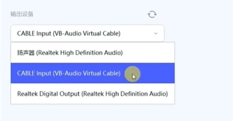 2、输出设备这里选择你好的虚拟声卡
