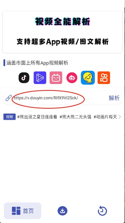1. 启动聚合解析助手App,待进入首页后,在输入框内输入需解析的视频链接。