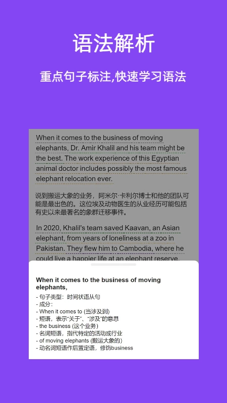 2. 迅速剖析海量文章内容,帮助大家轻松学习英语。