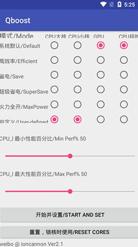支持对各类核心以及CPU进行调节,务必注意,不要让其他软件将进程结束掉。