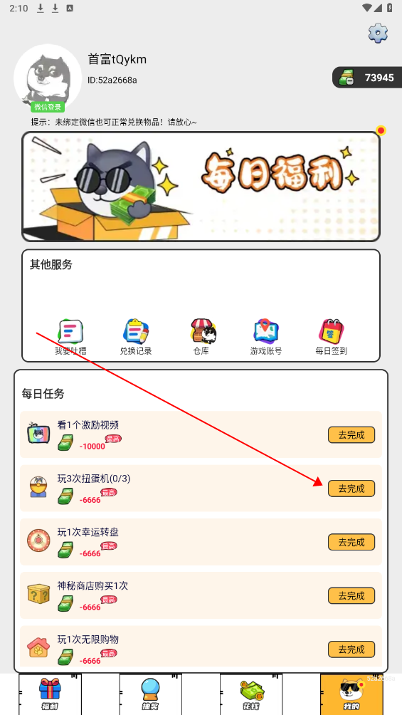 4.还有抽奖板块和完成各种每日任务获取奖励,加快兑换皮肤进程