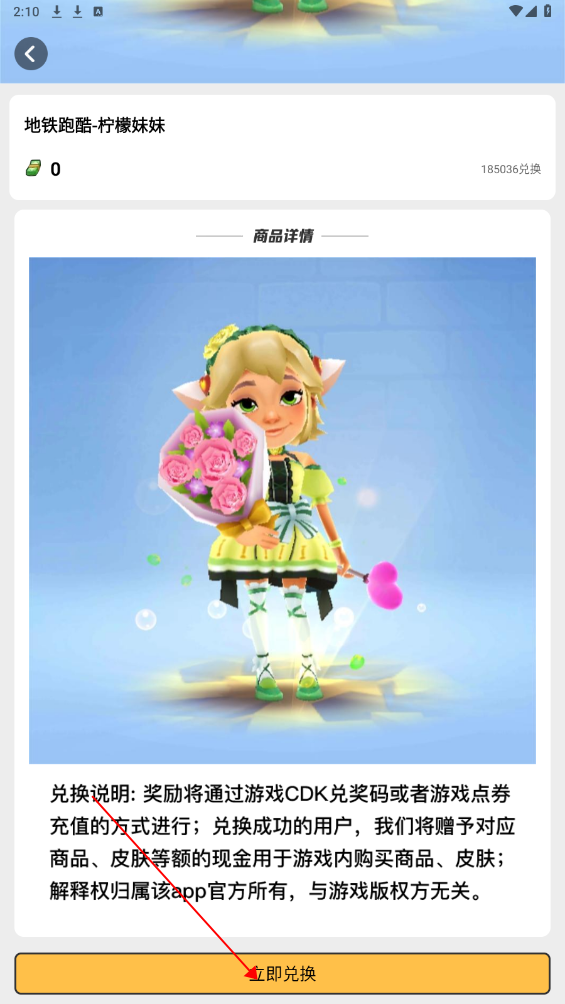 3.点击感兴趣的皮肤,进入详情页点击立即兑换