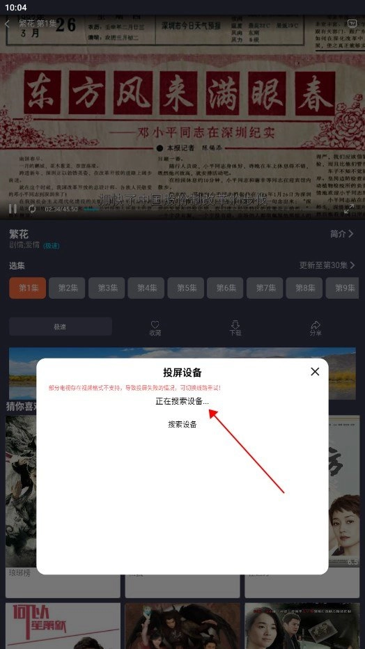 2.挑选心仪的影视剧,点击TV即可开启投屏功能。