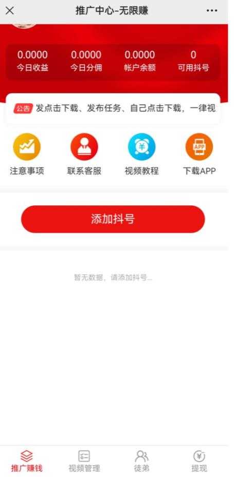 建议授权多个抖音号或收徒坐享分佣收益,严禁自己收自己的号做徒弟,检查发现直接冻结账户全部余额。