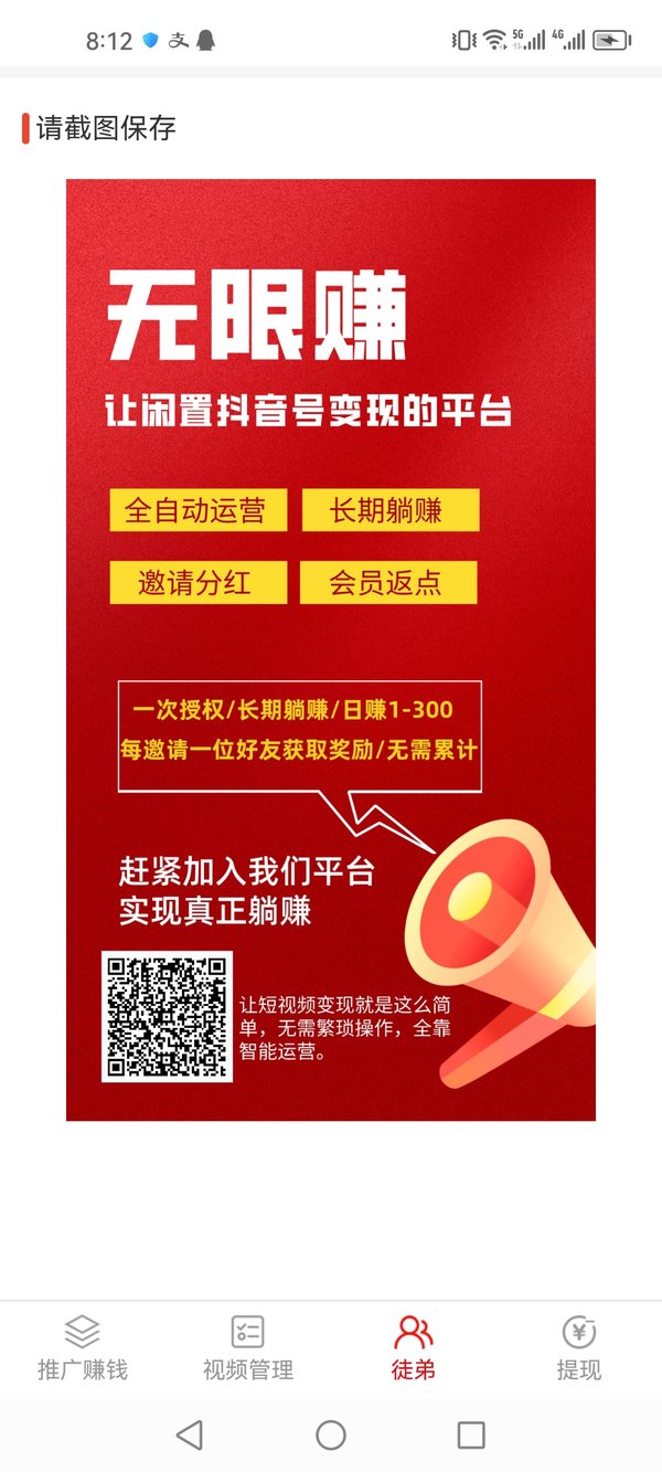无限赚是短视频代运营变现平台,无需投资,授权即可,平台负责制作发布作品转换收益,用户无需操作静等分成。