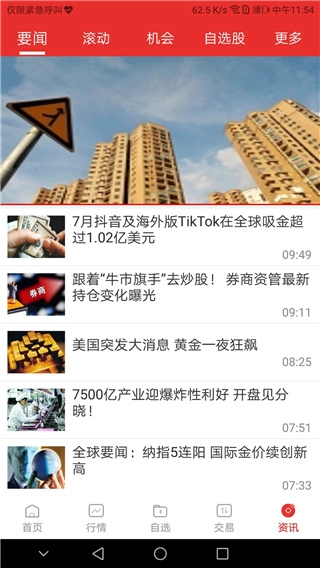 手机证券中的“资讯”,为用户提供及时、全面、权威的证券资讯信息。