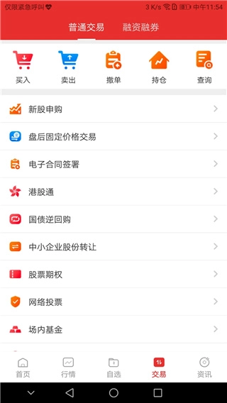 6、提供由行情转入交易,用户可由此直接进入交易,进行买卖股票查询等操作。