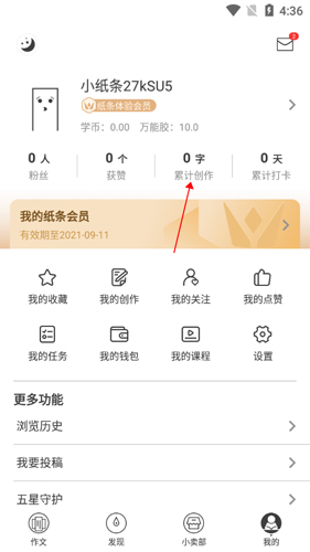纸条在做完之后可以看看自己的创作字数,通过字数来确定自己的努力和学习的成果,而看字数的方式非常的简单,只需要下方的操作即可。