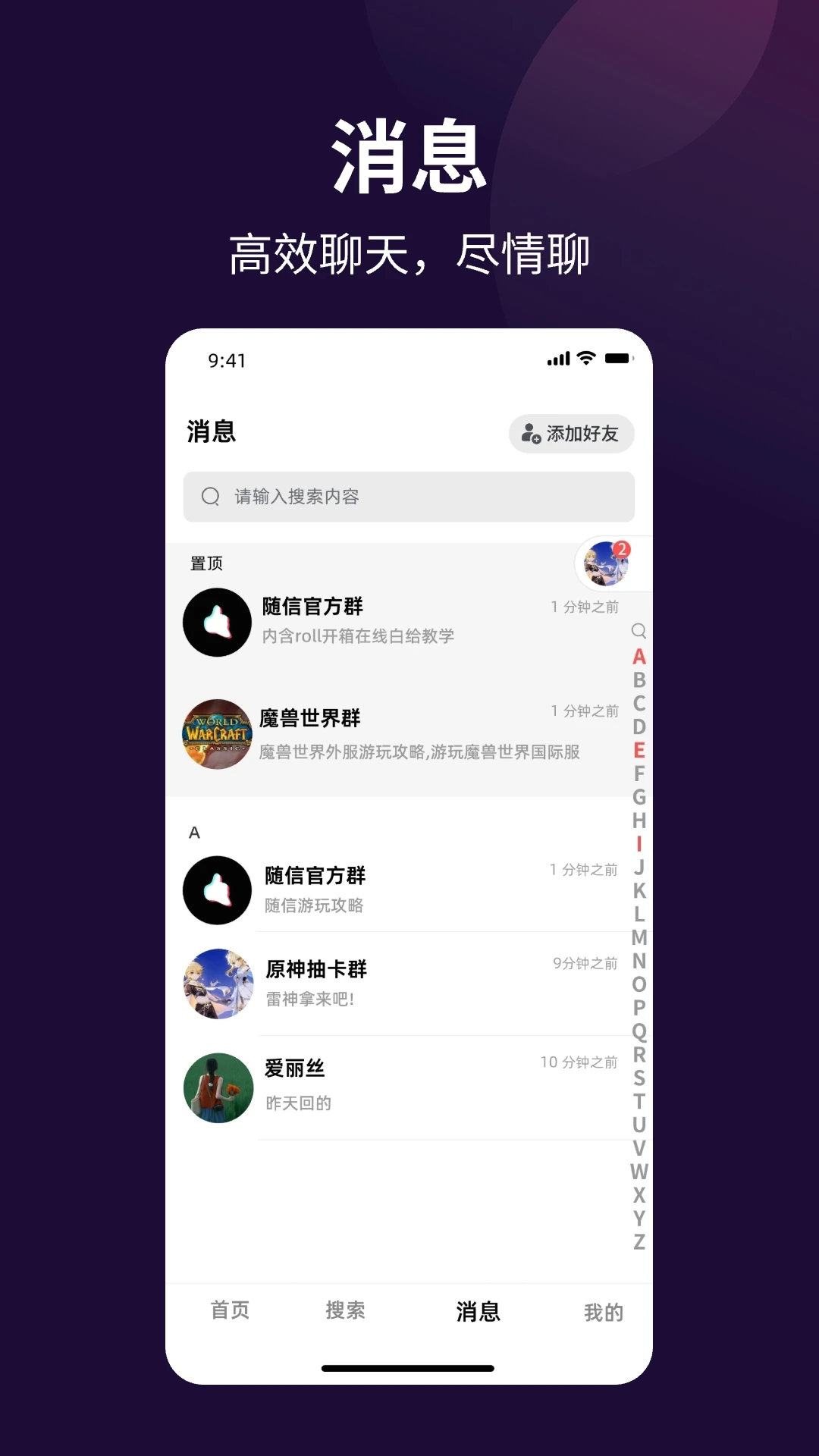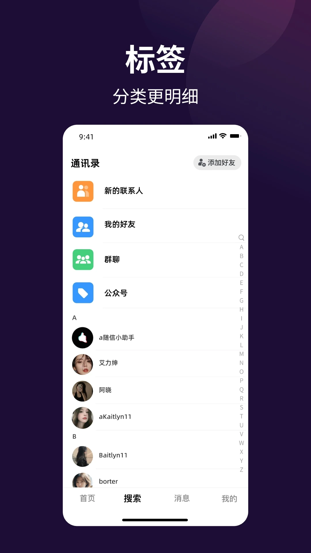 随信,这是一款专为安卓手机打造的社交互动软件,其中蕴藏着海量实用功能,等待着你来探索体验。在这里,用户只需轻松一键,就能添加好友,在线结识更多志同道合的朋友,并即刻开启畅聊。无论是语音、视频还是文字交流,都能让你感受沉浸式的社交乐趣。要是你对这款软件感兴趣,不妨点击一下试试!