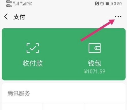 2、进入支付,点击右上三点。