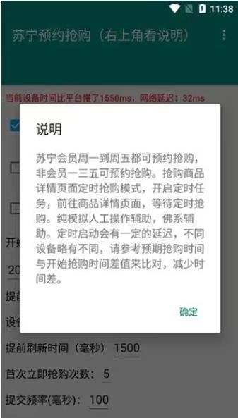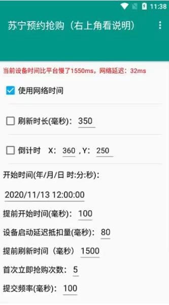 5、依据所需的设置展开调整,像抢购持续时长、提前开启时间、提交频率等。