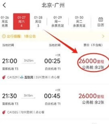 3、于奖励客票页面,挑选您想要订购机票的日期、舱位以及航空公司。