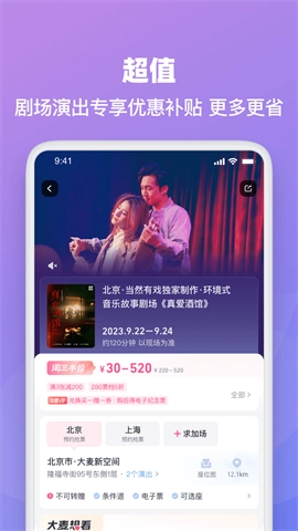 3、覆盖各类演出,包括歌舞剧、相声专场等知名品牌的活动。