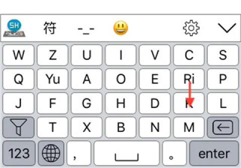 2、带h的声母需从首字母滑至第二行,比如声母sh,从s键滑行到第二行即可;
