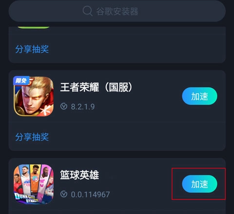 1. 第一步,你得准备一个加速器,在加速器中找到《全明星街球派对》海外版,然后点击“启动”。
