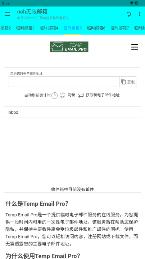 3、用户可以根据需要无限制地生成多个临时邮箱地址,满足多种场景下的使用需求。