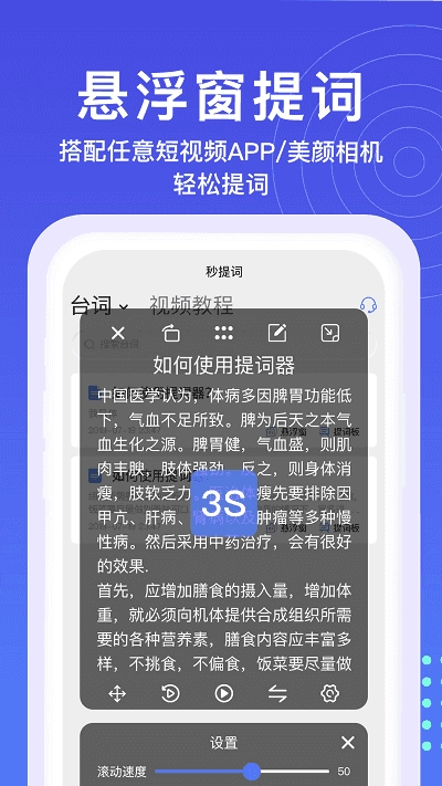 手机一键变身提词器,文案实时同步,再也不用为背台词发愁,它会时刻为你提醒。