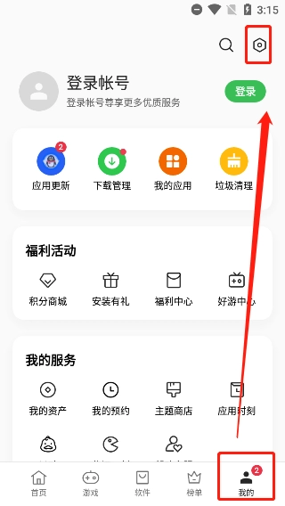 在我的账户界面,能够进行账号登录操作,还可以查看待更新的应用列表,以及对相关内容进行管理。