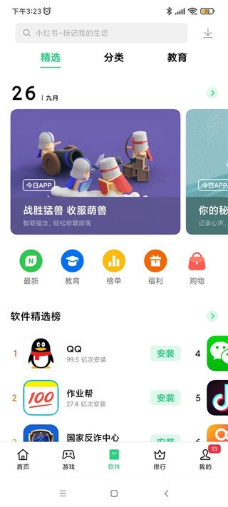 这款专为手机用户设计的应用商店,提供了便捷的资源获取渠道,还设有各类榜单,方便用户及时了解当下最新、最受欢迎的应用动态。