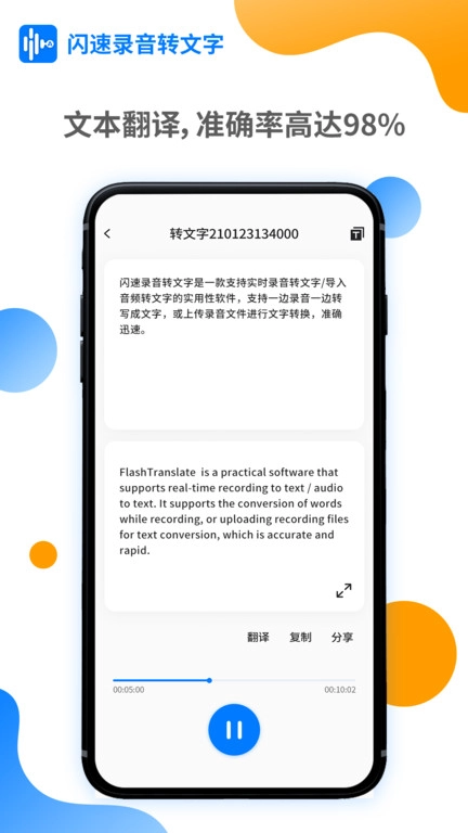 闪速录音转文字是一款具备实时录音转文字、导入音频转文字及在线翻译功能的实用软件,用户可借助它将课程录音、会议录音、采访录音等各类音频文件直接转写为文字,进而完成保存与分享操作。