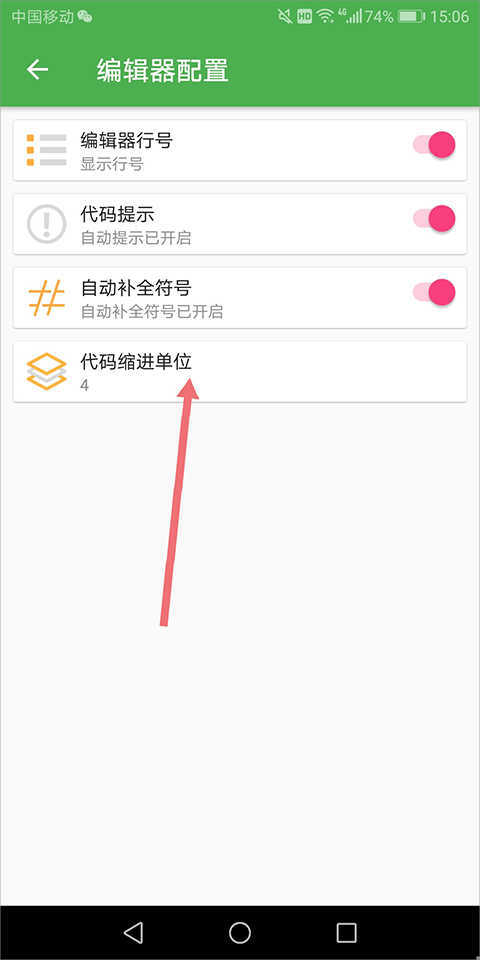 2、在打开的页面中选择【代码缩进单位】。