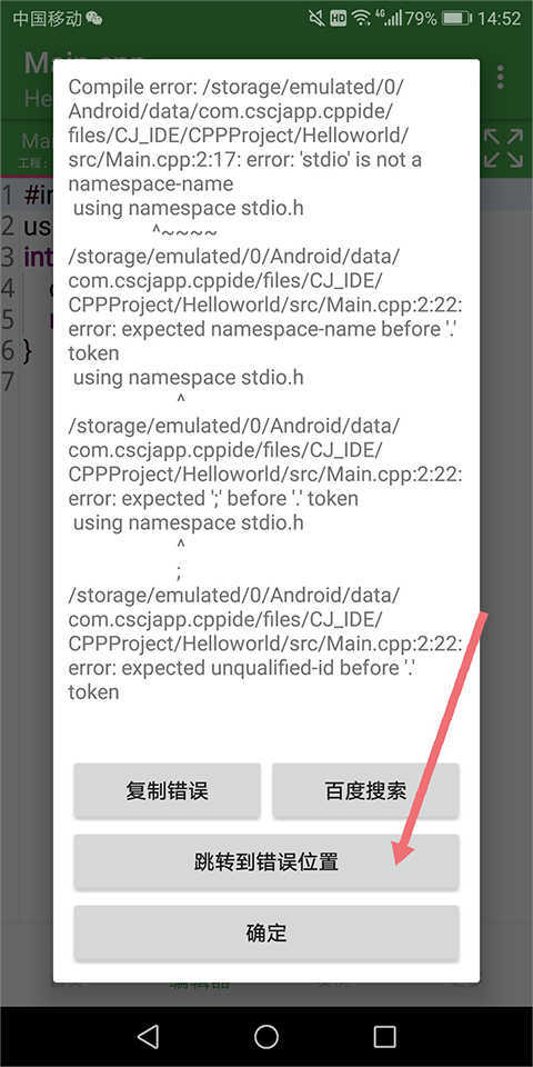 3、点击【运行】按钮就能对代码进行编译和运行操作。要是遇到错误,可在错误信息页面使用【跳转】功能来定位问题位置,这样便于进行修复。