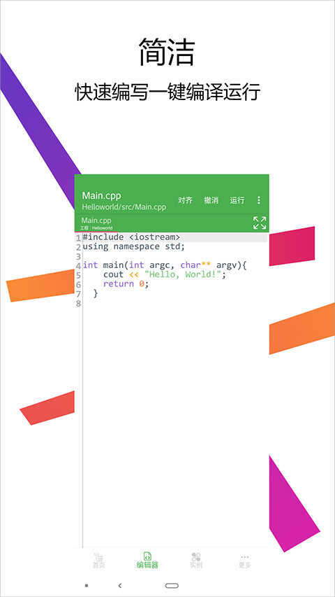 cpp编译器是一款适用于手机端的C/C++项目开发工具,它整合了完整的开发环境,用户只需在手机上安装这款软件,就能便捷地完成C/C++代码的编写、编译与运行流程,操作十分简单,欢迎体验!
