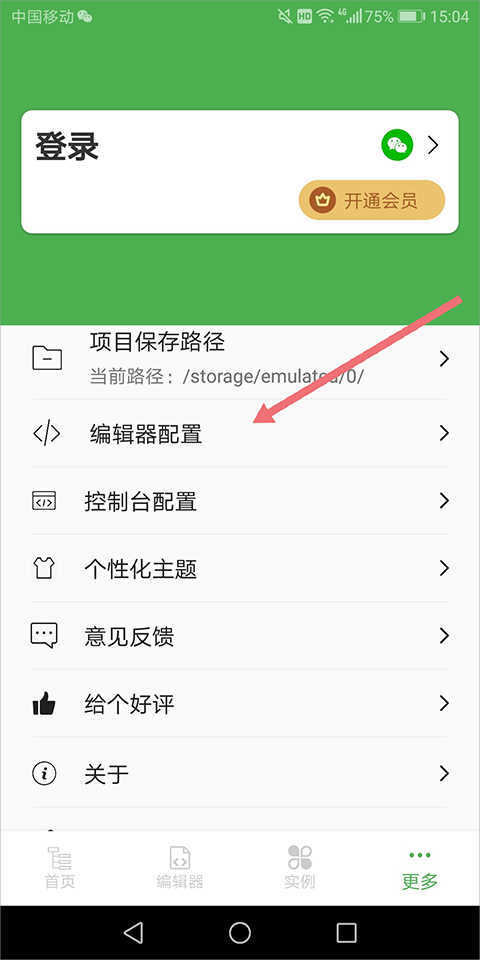 1、进入更多设置页面,点击【编辑器配置】选项。