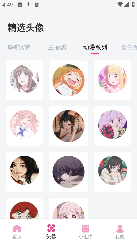 4、在头像页面,你可以挑选不同主题来探索,像动漫风格的头像就可供选择。