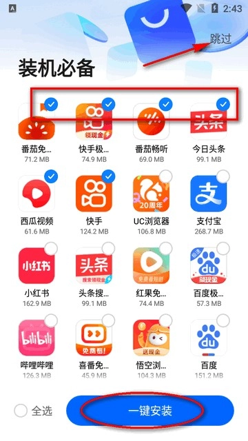 2、打开后默认会给你安装很多软件,点跳过。