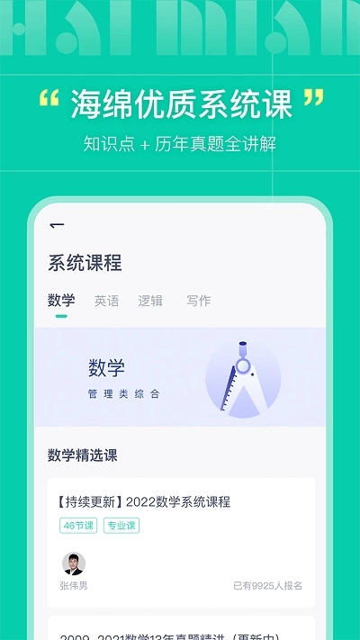 利用碎片化时间,高效汲取核心知识!全面覆盖大纲考点,海绵MBA顶尖师资团队倾力授课,搭配针对性课后练习,为自学考生打造系统复习的理想方案。