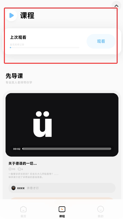 2、点击"课程"按钮可进入系统化教学模块,观看专业德语教学视频。