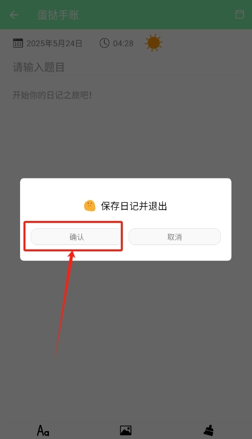 3、最后再点确认保存,自动退回主页,刚写的手账就安全存好了。