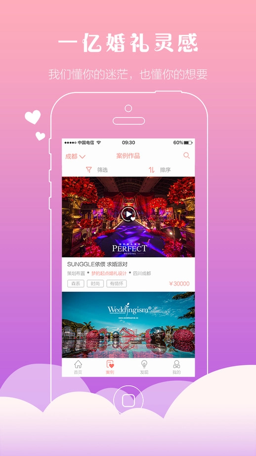 3、灵感图库每日更新最新婚礼创意设计方案,支持按风格、色调等条件筛选理想效果。