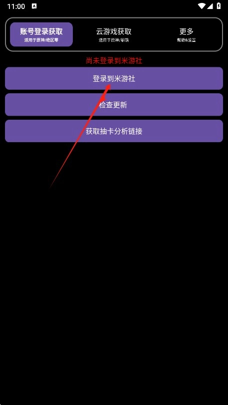 1.进入后我们首先登录到米游社,只有这个登录了才能知道你用的什么账号玩的游戏