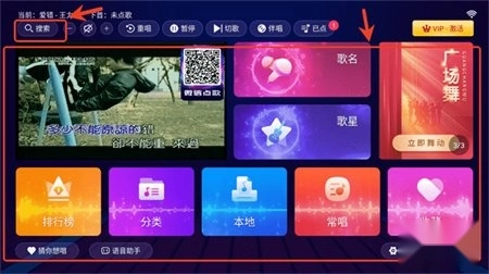 1、进入软件后,您既可以借助左上角的搜索功能查找想演唱的歌曲,也能在主页面的推荐专区里发现心仪的曲目。