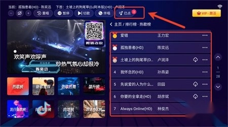 2、随后,进入点歌界面,点击您感兴趣的歌曲,就能把它添加到“已点”列表里。