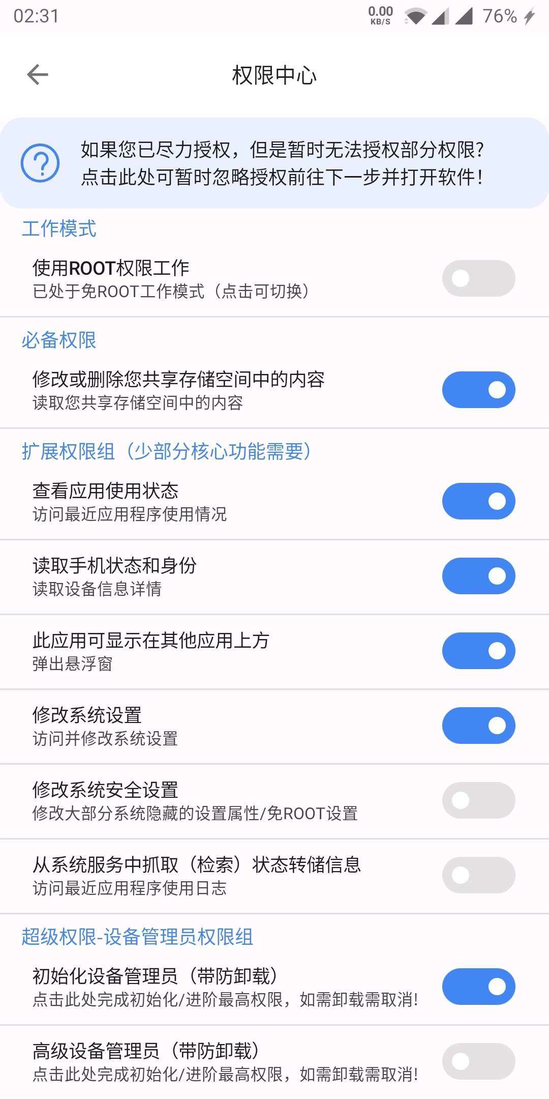 root权限是系统层面的最高权限,免root的超级管理员权限则是设备使用场景下的最高权限。简单来说,设备的部分系统功能可以通过root权限进行强制修改,而超级管理员权限无法实现这一点。