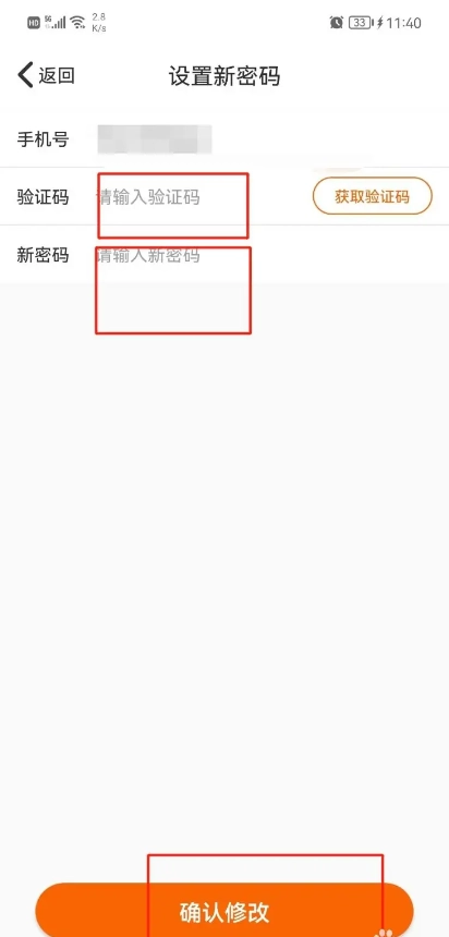 4、输入手机收到的验证码,接着设置新的密码,完成后点击【确认修改】按钮就可以了。