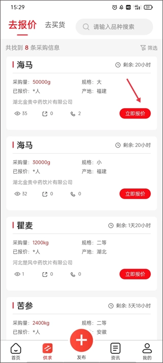 6、掌上报价咨询服务,助力用户以更优价格采购中草药,顺利达成药材采购交易。