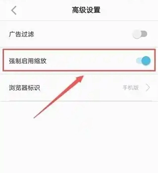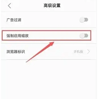 4、打开“高级设置”窗口后,找到并选择“强制启用缩放”这一栏目