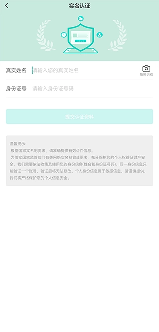 2、按照要求填写实名认证信息、上传证件以及采集人脸