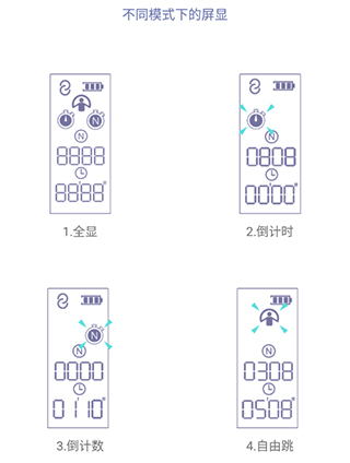 1、提供计数跳、计时跳、自由跳三种模式供您选择,可满足您多样化的训练需求;