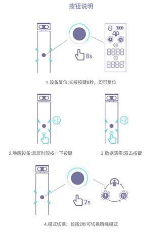 2、下面图片中所展示的就是智能绳的按钮说明。