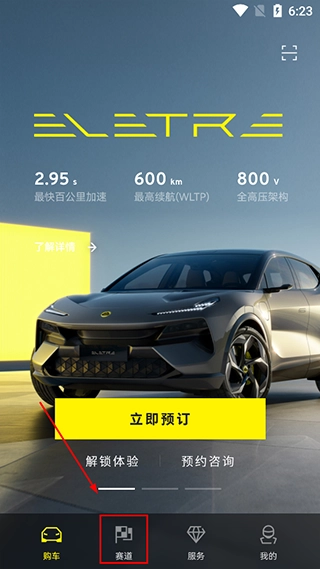 1、登录路特斯,点击下方【赛道】;