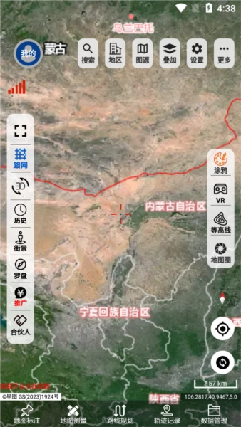 4、各种地图工具,距离测量,面积测量,海拔查询等功能。