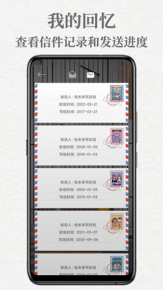 3、时光胶囊可视化界面,以时间轴形式展示已寄出与待接收的信件,清晰呈现情感传递的时空轨迹。