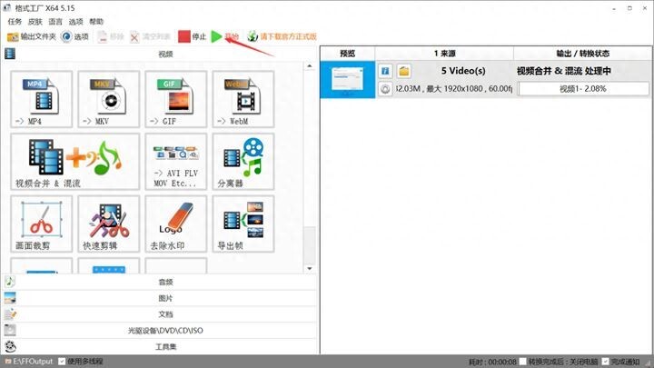 格式工厂视频合并教程