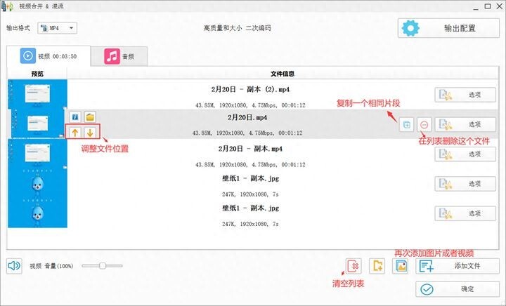 文件添加完成后,你可以对文件位置进行调整,也能剪辑视频文件,这些操作都支持自定义设置。